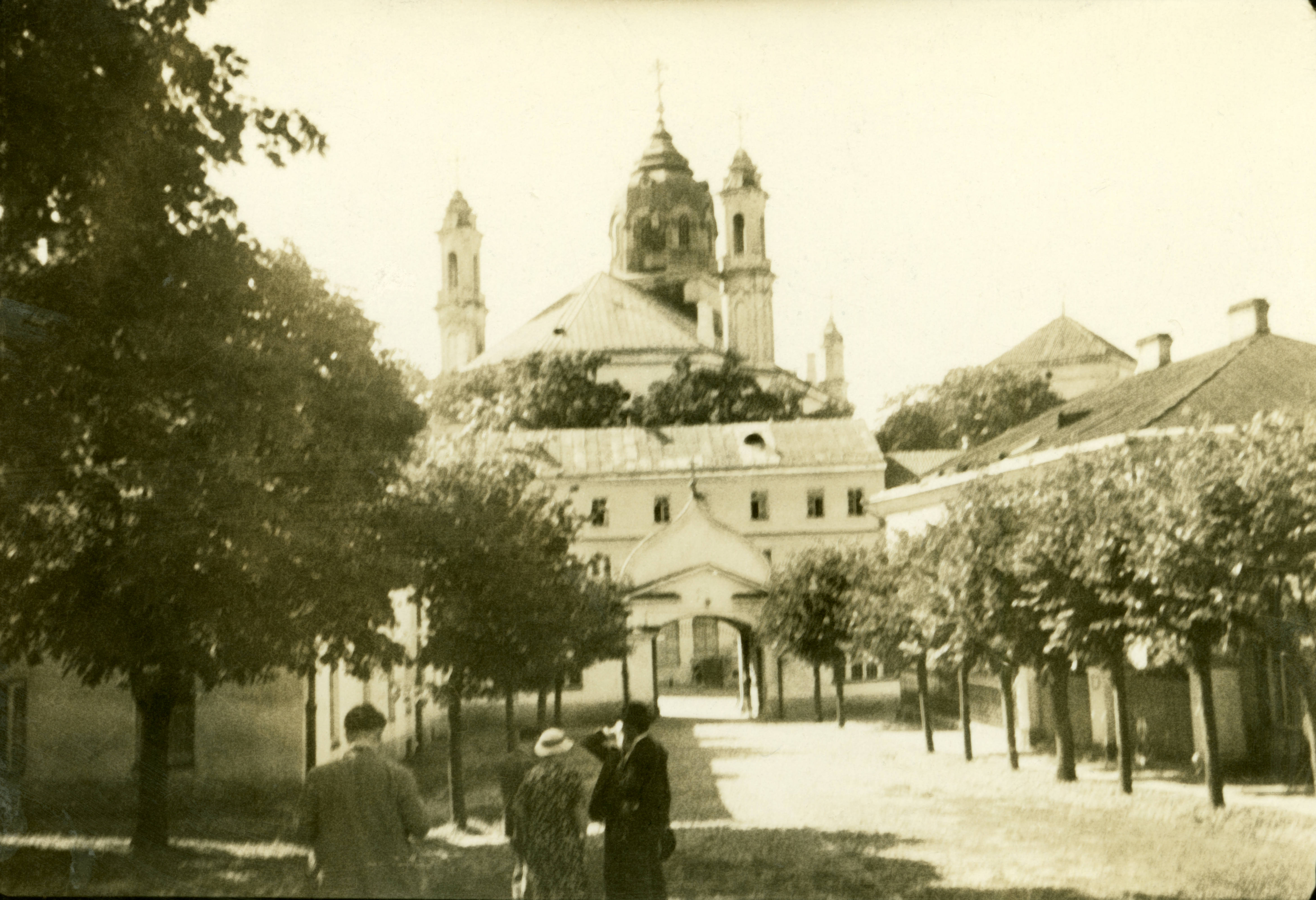 Pusė pirmos popiet, ponios Boyd ir jos kolegų laukė priėmimas pas Stepono Batoro universiteto rektorių Witoldą Staniewiczių. Po sutikimo Universiteto Kolonų salėje ir pietų, pasivaikščiojimas mieste pratęstas. Didžiąja ir Aušros Vartų gatve keliautojai pasiekė Šv. Dvasios vienuolyną (10 il.). Čia ponia Boyd atliko vienintelius jos bendrakeleivius fiksuojančius kadrus. Kas jie – nenustatysime, tačiau iš spaudos žinome, kad be ponios Boyd į Vilnių atvyko trys vokiečiai, katalonas, bulgaras, amerikietis ir šeši prancūzai. Kartu su prof. Limanowskiu svečius lydėjo ir jo asistentė ponia Rewieńska. Gal tai ji gėlėta suknele ir balta skrybėlaite? (11 il.) Draugišką kolegų pokalbį po apsilankymo Šv. Dvasios cerkvėje nupaveikslavusi ponia Boyd, beveik atkartojo Vilniaus fotografikos (taip, fotografikos) meistro Jano Bułhako kadrą. Jame – link vienuolyno vartų besileidžianti jaunų liepų alėja, perauganti į Šv. Trejybės cerkvę, kurios gležnus, barokinius bokštelius iškilmingai karūnuoja centrinis kupolas. Kas patikėtų, kad šis, šiandien nebeegzistuojantis papuošimas – medinis?!