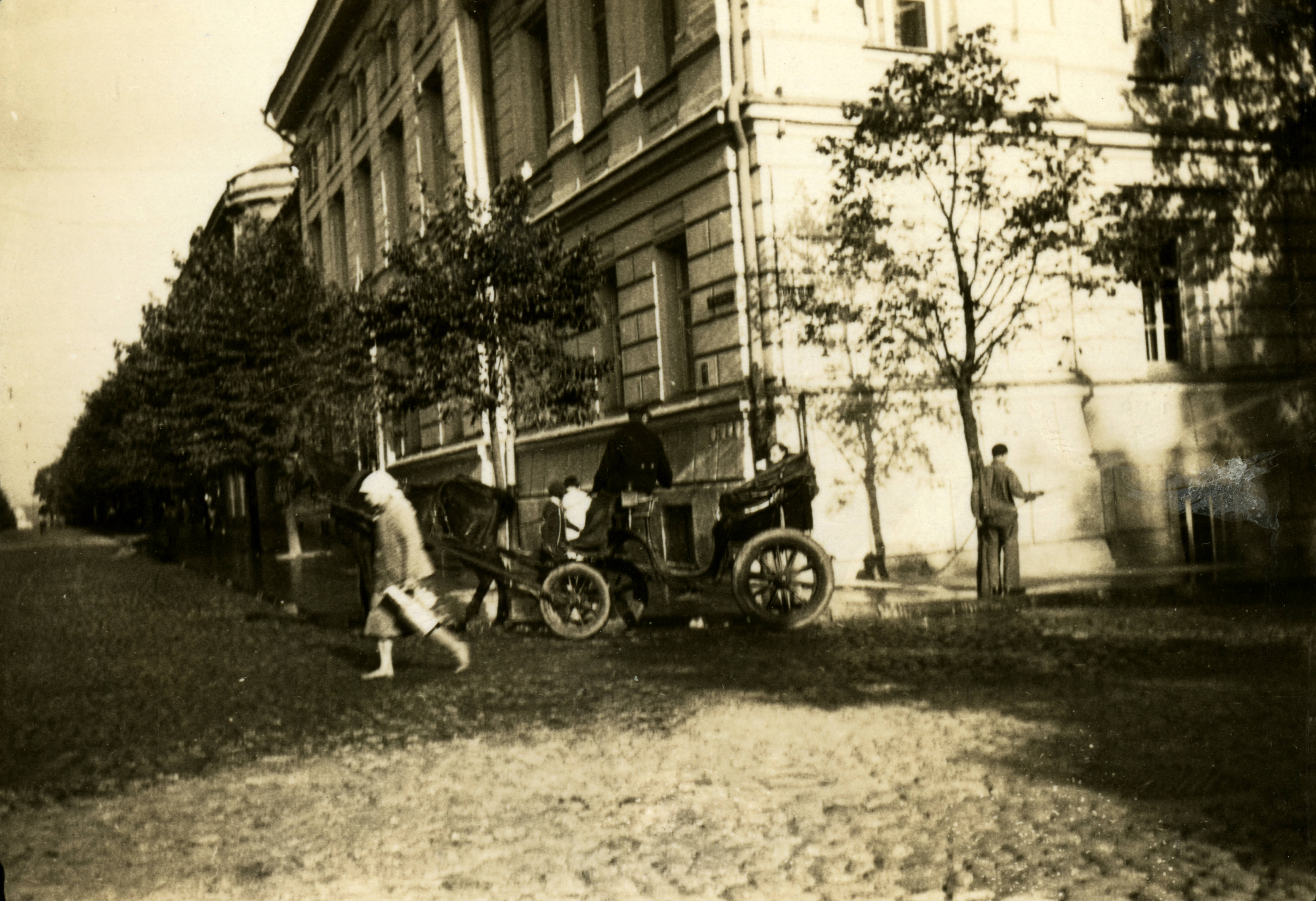 Dienos kelionę užbaigė pasivaikščiojimas netoli geležinkelio stoties. Geležinkelio gatvėje svečiais susidomi vienas šalia kito sustoję vežikai, savo dorožkose laukiantys pavakario keleivių (12, 13 il.). Aplink – praeiviai ir kvailiojantys vaikai. Ši vieta šiandien – visiškai pasikeitusi, tačiau gatvės grindiniu nubėgantys siauruko bėgiai leidžia atsargiai nuspėti fotografavimo vietą.